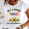 (European Size) Summer Fashion Dragonfly Dandelion Plant Short Sleeve Women Print Tee Top T-shirt Lady Female Clothing Casual Graphic T-shirt