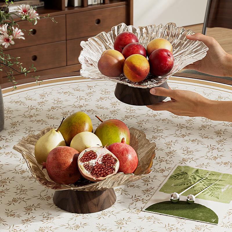 Retro High-Foot Wood Grain Fruit Bowl