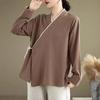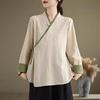 Plus Size Cotton Linen Zen Tea Shirt: Retro Chinese Style with Oblique Collar & Tie-up