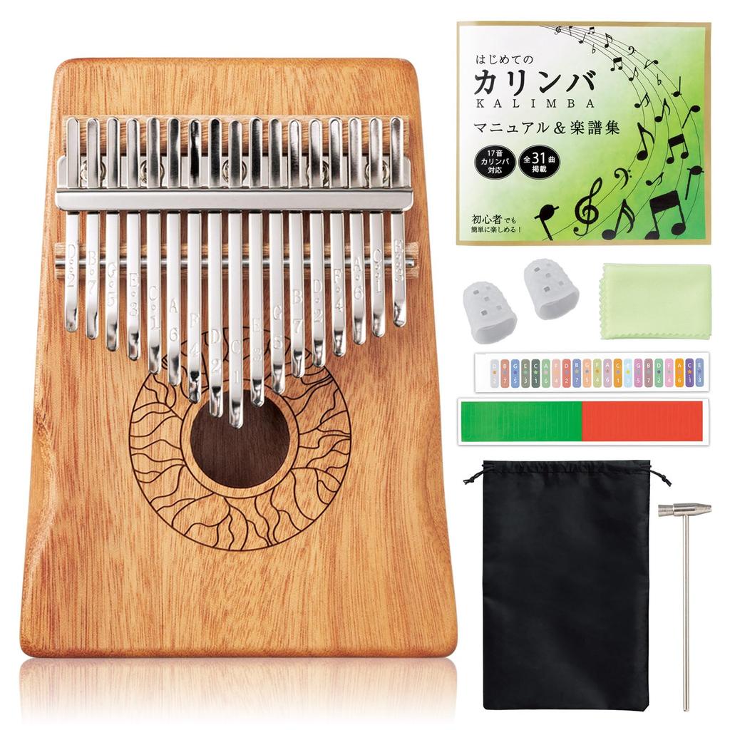 Komolife Fun and Relaxing Kalimba Beginner Musical Thumb Tuning Sheet and Bag Set Instrument, Piano, Mahogany, Hammer, Music, Included.