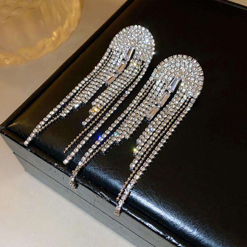Rhinestone Geometric Tassel Earrings - French Court Style Luxury Studs for a Fashionable, Individualistic Look
