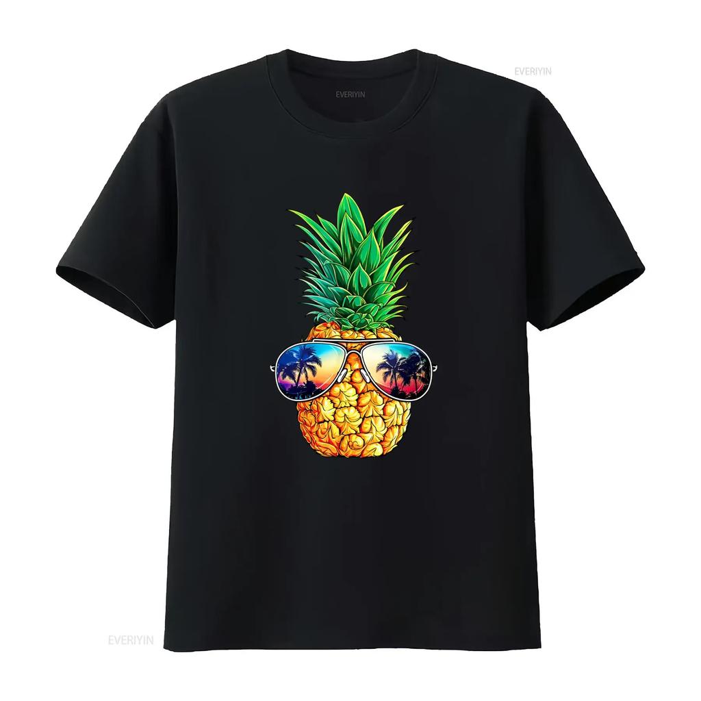 Fashion Pineapple Sunglasses T Shirt Aloha Beaches Hawaii Hawaiian Black Vintage Washed Streetwear Fashion Soft Casual Slightly