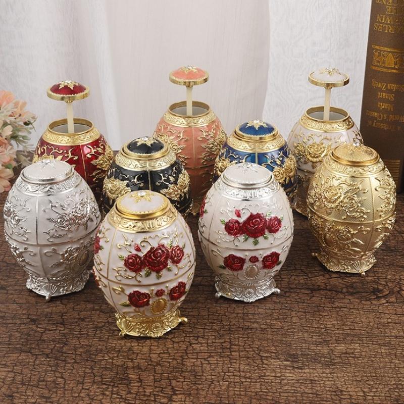 Automatic Push-Type Toothpick Box Engraving Rose Alloy Platinum Toothpick Organizer Holder European Style Decoration Unique Gift