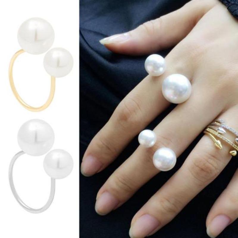 2 Pcs Women Faux Pearl Opening Adjustable Polished Lightweight Electroplated Prom Party Index Finger