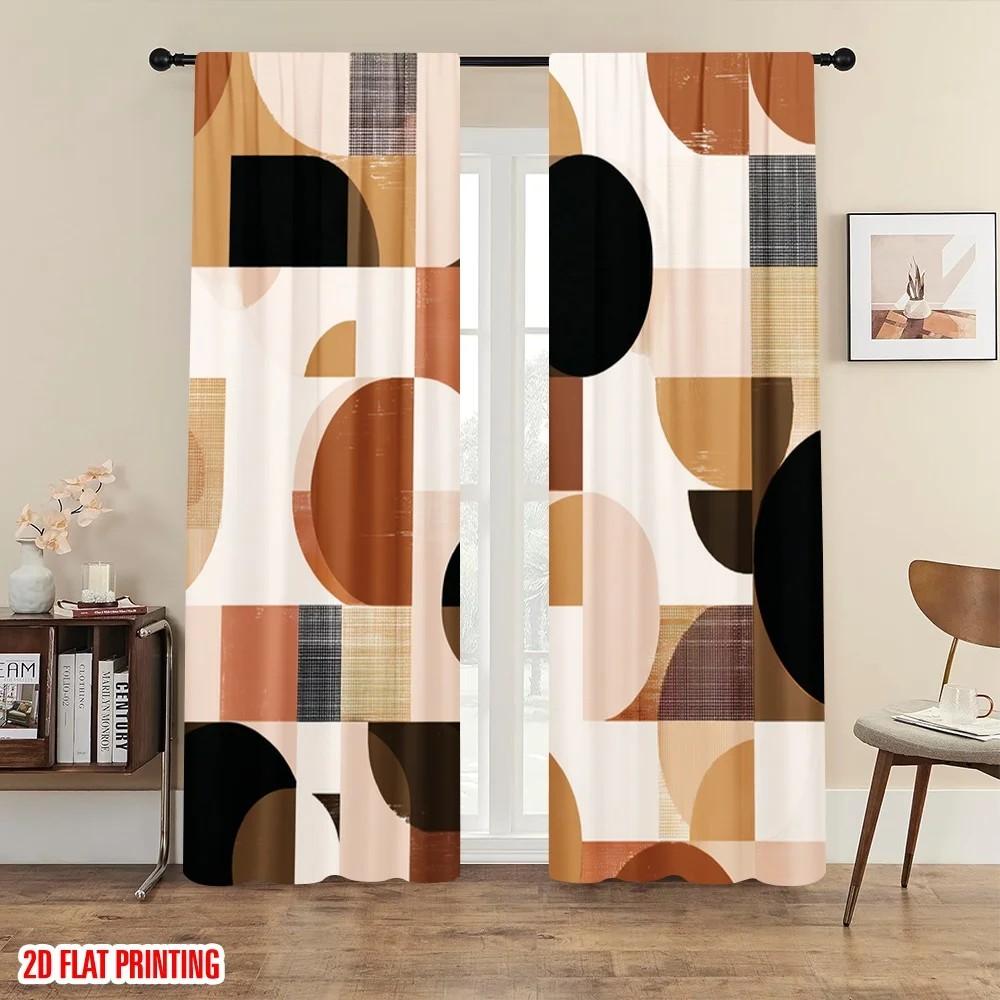 Set Of 2 Modern Geometric Block Print Curtains Design Polyester Living Room Holiday Window Decor Home Ro Curtain Darkening Ideal For Sitting
