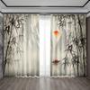 Cortinas de estilo de caligrafía china tradicional, imagen de árbol de bambú, cortinas geométricas 3D modernas, hogar y dormitorio, decoración de ventanas