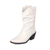 Botas blancas de media pantorrilla para mujer, con cremallera lateral y puntiagudas, estilo vaquero occidental, estilo retro, tallas grandes 36-43 NoEnName NuII
