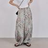 Johnature Suvised Korea kuurordi triibulised lahtised püksid vabaaja laia säärega hingavad täispikad püksid naistele