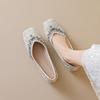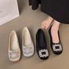 Weiwei Girl 566-1 Square Head Single Shoes Women's Flat Bottom One Pedal Doudou Shoes Rhinestone French Soft Sole Large Size Women's Shoes