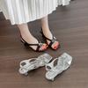Fashion Luxury Crystal Women Heeled Sandals Designer Square Toe Mid Heels Shoes Summer 2025 Stilettos Pumps Slingback Femme