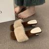 Fashion Summer Woman Modern Slipper High Heel Fashion Color Feather Fur Peep Toe Slippers Female Slides Shoes Outside Sexy Leisure Shoes