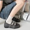 Silver retro French round head light mouth flat-soled single shoes women's 2025 new summer soft-soled ballet Mary Jane shoes
