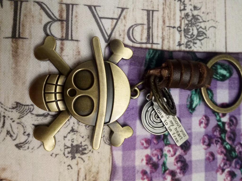 Porte-clés rétro japonais avec pendentif tête de mort One Piece en similicuir