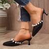Sweet Pearl Shoes High-heeled Slippers One-strap Shoes Sandals Summer Buns Slippers for Women
