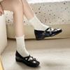 French bow shallow mouth Mary Jane shoes women's 2025 new gentle evening breeze buckle flat small leather shoes