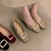 Metal square buckle shallow mouth single shoes women's 2025 autumn new thick heel low heel square head commuter Mary Jane shoes Doudou shoes