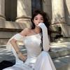 Elegant White One-Shoulder Long-Sleeve Loose-Fit Women's Autumn/Winter Top