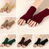 Women's Winter Warm Wool Gloves, Fingerless Diamond Knit Short Gloves