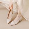 Shallow Apricot Women's Shoes Thin Heels Pearl Square Toe with Medium Pleated Ladies Footwear Shoe Casual Popular Fashion Young
