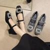 French Mary Jane shoes women's spring and autumn 2025 new with skirt rhinestone high heels single shoes thick heel square head small leather shoes