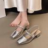 A Woman with A Cool and Elegant Style Wearing A Single Pair of Shoes Summer Flip-flops and Thick-heeled Sandals