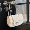 New leather small square bag camellia pattern first layer sheepskin texture chain crossbody women's bag