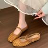 Fashion Fashion Inner Height Increase Baotou Half Slippers for Women Summer Outside Wear New Hollow Sandals Bow Mary Jane Single Shoes