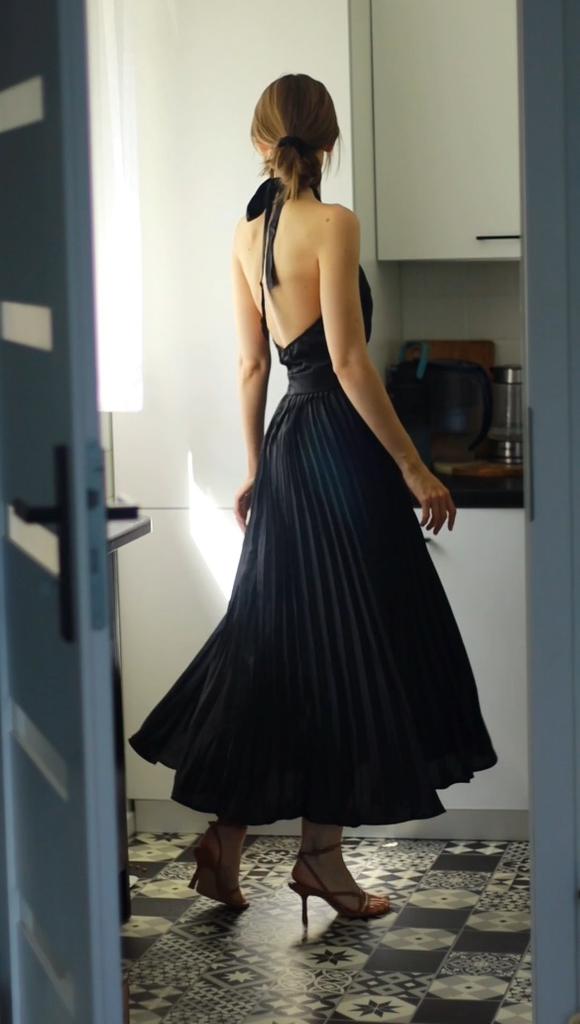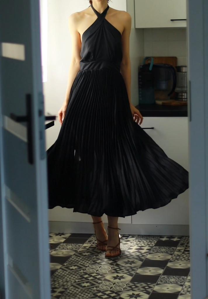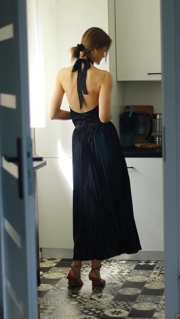 Tokios suknelės neturiu, bet džiaugiuosi, kad galiu pabandyti. 1) Medžiaga yra mažiau šilkinė, tvirtesnė. Ir forma išlieka ilgai. 2) Manau, kad ir suknelės atidarymas yra puikus, ypač jei esate aukštesnis, jis gali būti net gražesnis!