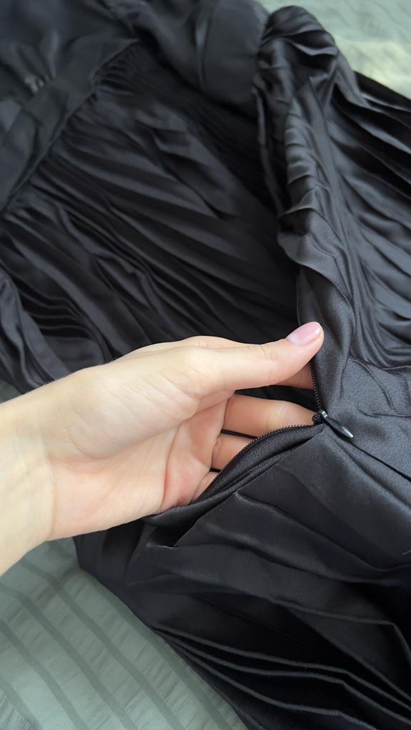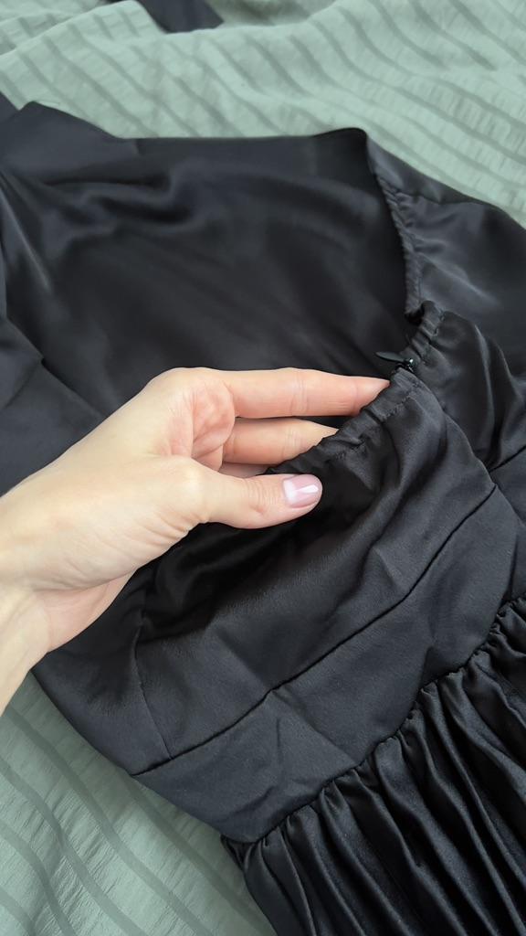 Graži ir elegantiška suknelė 🖤 Šiek tiek per didelis, bet vis tiek atrodo gerai) Mano ūgis 175, ilgis tobulas OG 79 Nuo 59 Apie 89 Audinys sintetinis, malonus liesti Suknelė atitinka nurodytas pardavėjo nuotraukas)