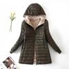 Sieviešu ziemas vidēja garuma jaka Korean Edition ar kapuci Fit Plus Flīsa kokvilnas mētelis silts jēra vilnas Parkas ziemas jakas