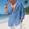 New Style Spring and Summer Men's Hooded Inch Shirt Solid Color Cotton Linen Men's Casual Long-sleeved Top