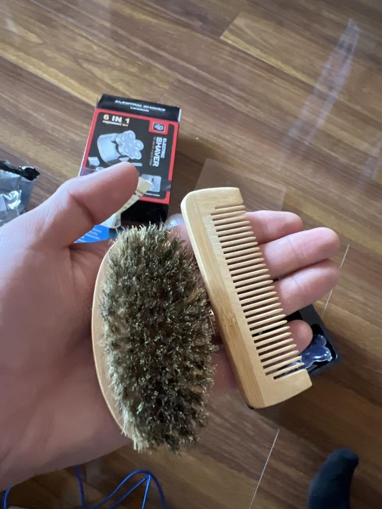 Nytt villsvin, skjeggbørste og trekam Bambus-trekamsett for menn, pleie reiseveske Valentinsdagen