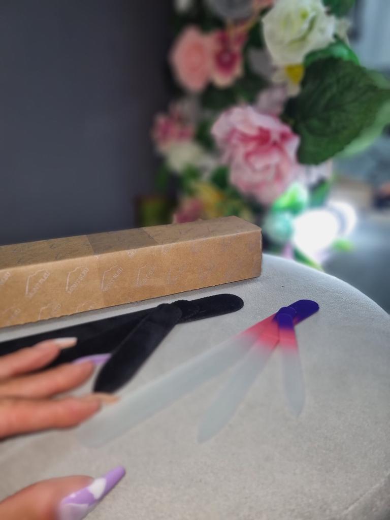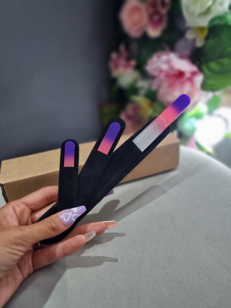Sett med 3 Rainbow Crystal neglefiler, håndlaget av tsjekkisk herdet glass R-BMS