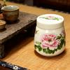 Tebeholder Dekorativ beholder Flerbruks Gjenbrukbar Hjemmedekor Keramisk krukke med lokk