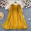 Vår Ny O-hals Kappe Kjoler Tungt Rynket Løs A-linje Kjole for Kvinner Y2k Middels lengde Rett Kvinnekjoler