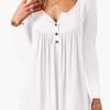 Ensfarget V-hals uregelmessig høst og vinter T-skjorte langermet plisseret knapp for kvinner