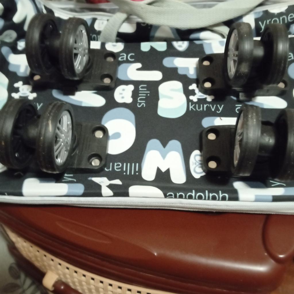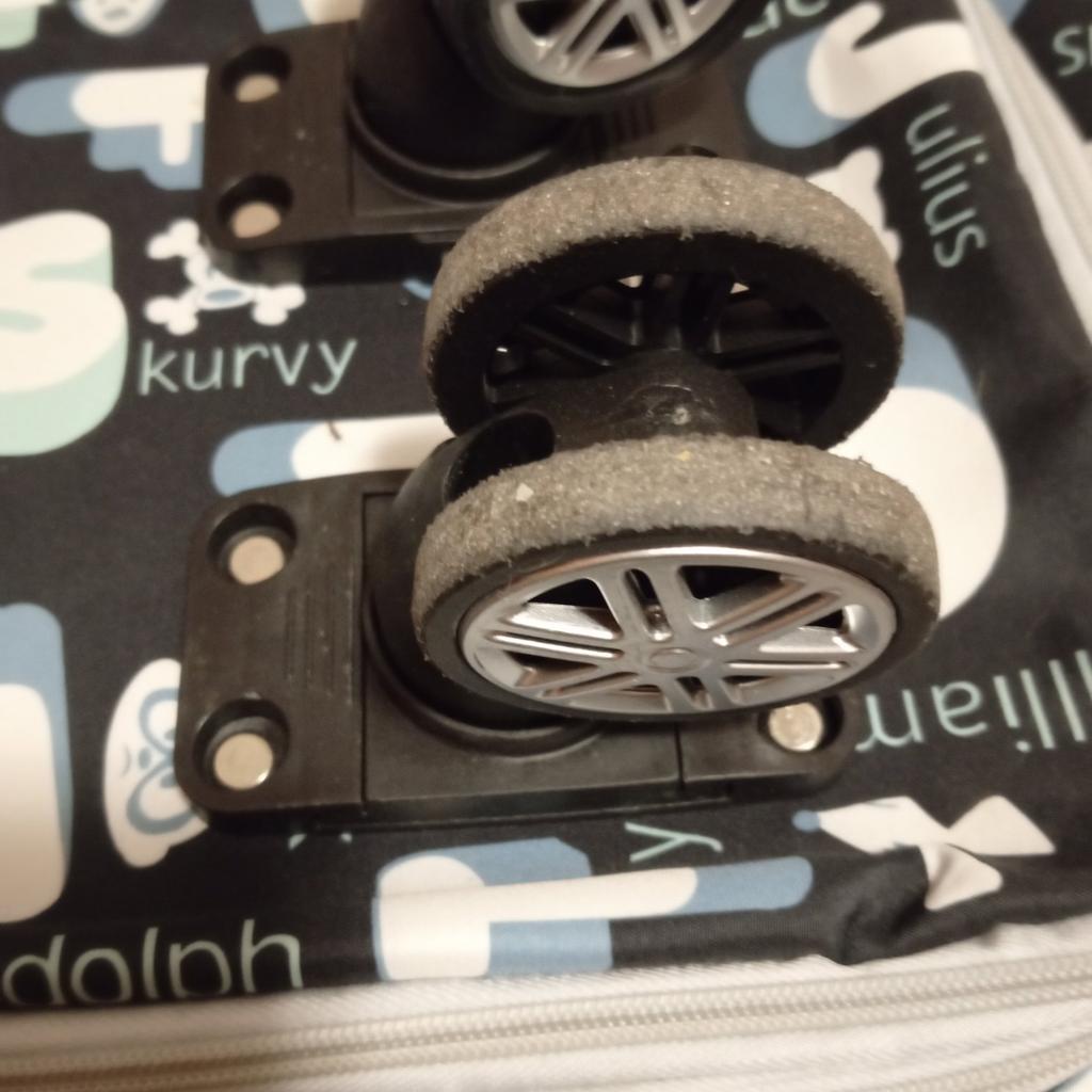 Lett å trekke på hjulene. Kofferten ruller, angående støy kan jeg ikke si noe ennå - har rullet den på parkett))) Håper de ikke skuffer i bruk, og at hjulene holder litt lenger. Og de er så søte, oransje)))) Takk skal du ha)