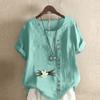 Kvinners moteblomst med rund hals, kortermet T-skjorte Uformelt bomull Lin Grafisk skjorte Fritid Løse sommerbluseoverdeler