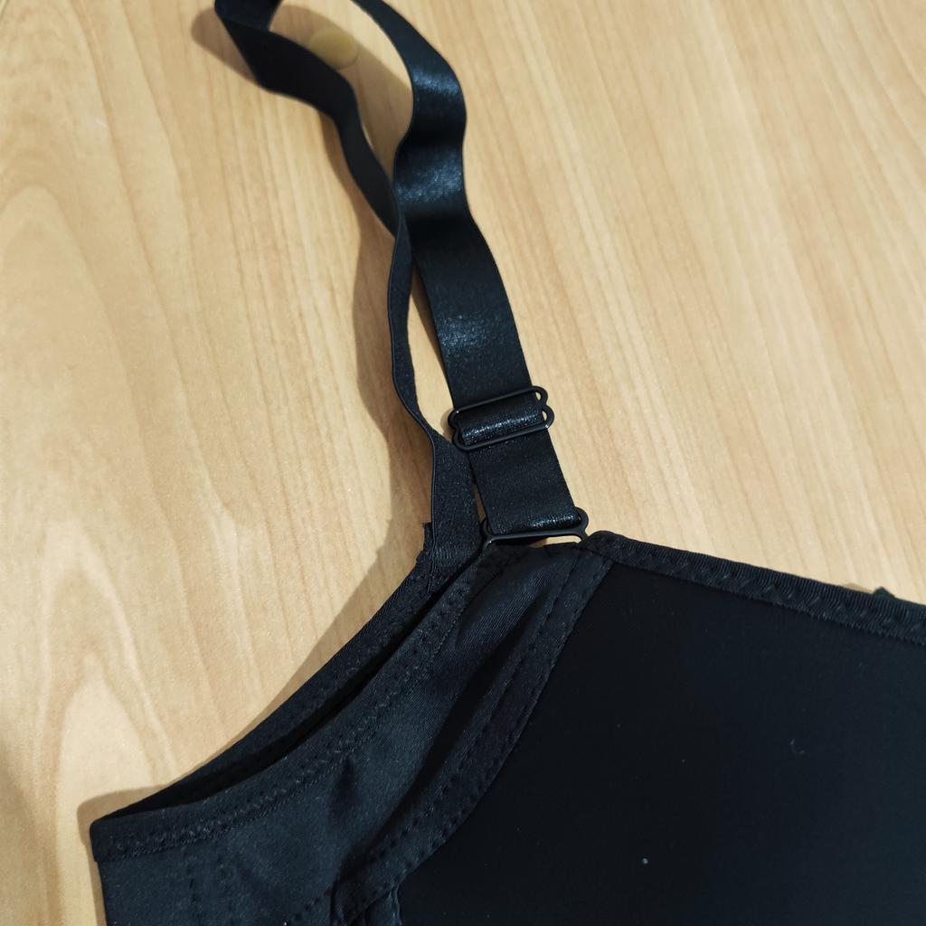 AF-cup-BH, stålringer som ikke merker, glanset undertøy, rynket, justerbar, anti-sag sports-BH med dyp V-form.