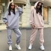 Women Solid Color Sport Suit Two Pieces Set Long Sleeve Hoodies Loose Casual Sweatpants Sports Wear Homewear