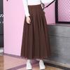 2025 High-Waist A-Line Mesh Skirt: Three-Layer Pleated Fairy Skirt for Spring & Autumn
