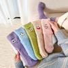 Cute Women Thicken Floor Sock Cartoon Funny Eyes Plush Socks Winter Home Sleep Thermal Slipper Color Striped Mid-tube Socks