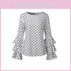 Fashion Women's Bell Sleeve Loose Polka Dot Blouse Casual Ladies Shirt Tops