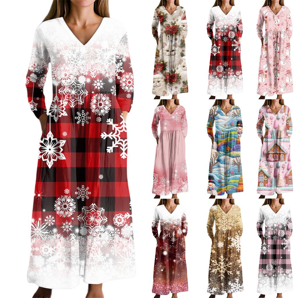 Dame Mote Kjole Vår V-hals Langermet Kjole