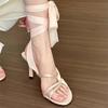 Human pink, meat pink high-heeled sandals women's summer mesh fairy shoes