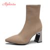 Fashion Aphixta Black Knitting Elastic Women Socks Boots Shoes Elegant Metal Thin High Heel Pointed Toe Ankle Boots for Women