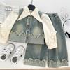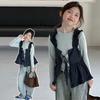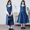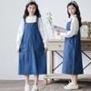 Get ready for spring with this charming denim skirt and shirt set designed with a touch of Korean style. Perfect for big kids, this trendy two-piece features a soft cotton material for ultimate comfort. The set includes a long-sleeve shirt that pairs beautifully with the stylish denim overalls, offering a chic and fashionable look for any outing.