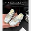 Soft leather version silver training shoes 5cm thick sole heightening bow single shoes 2025 new light mouth ballet shoes women