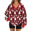 Women's Fashionable V-neck Christmas Printed Long Sleeved Casual Pullover Plush Warm Pocket Sweatshirt Top