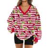 Women's Fashionable V-neck Christmas Printed Long Sleeved Casual Pullover Plush Warm Pocket Sweatshirt Top